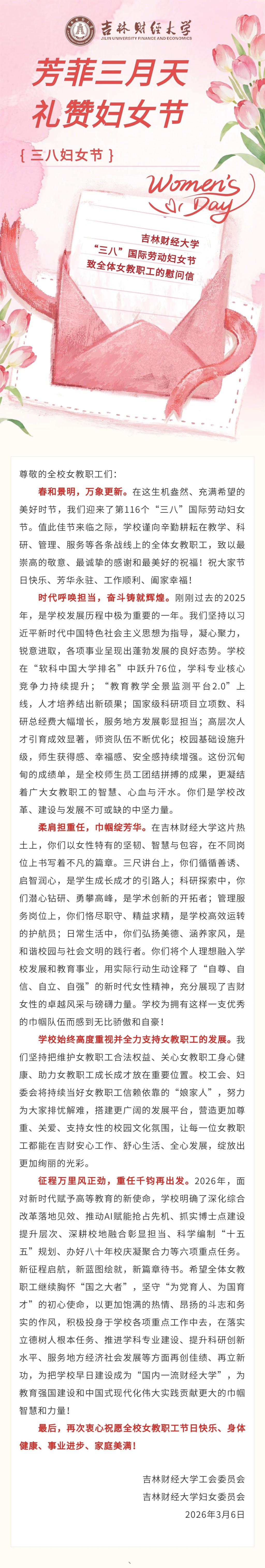 taptap点点体育“三八”国际劳动妇女节致全体女教职工的慰问信