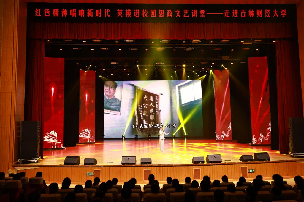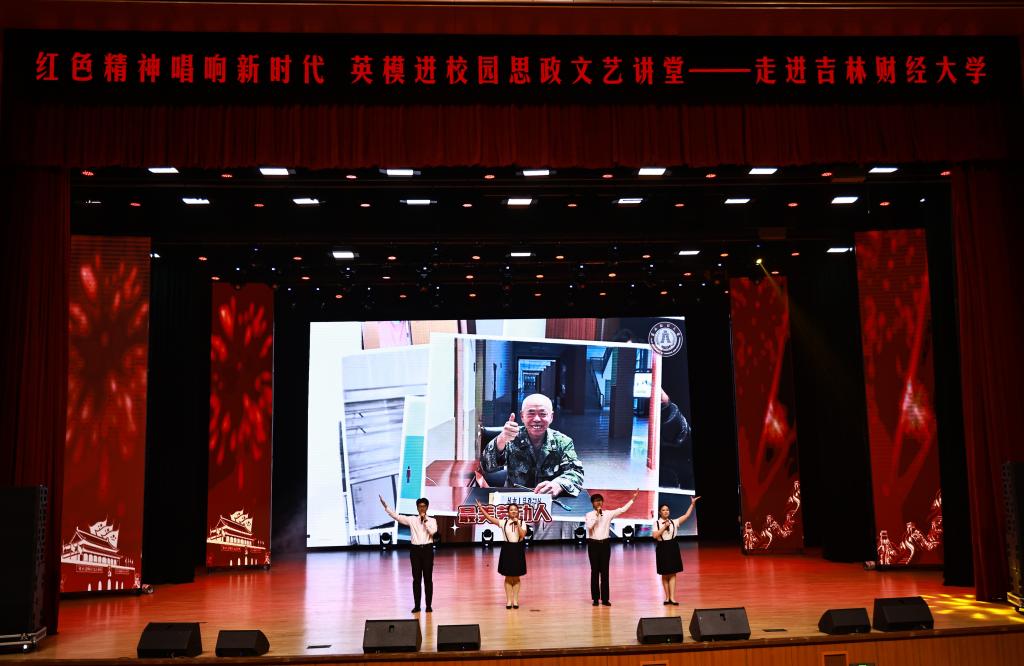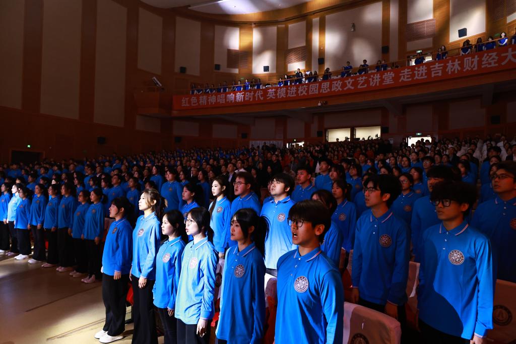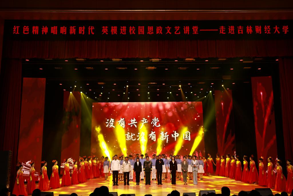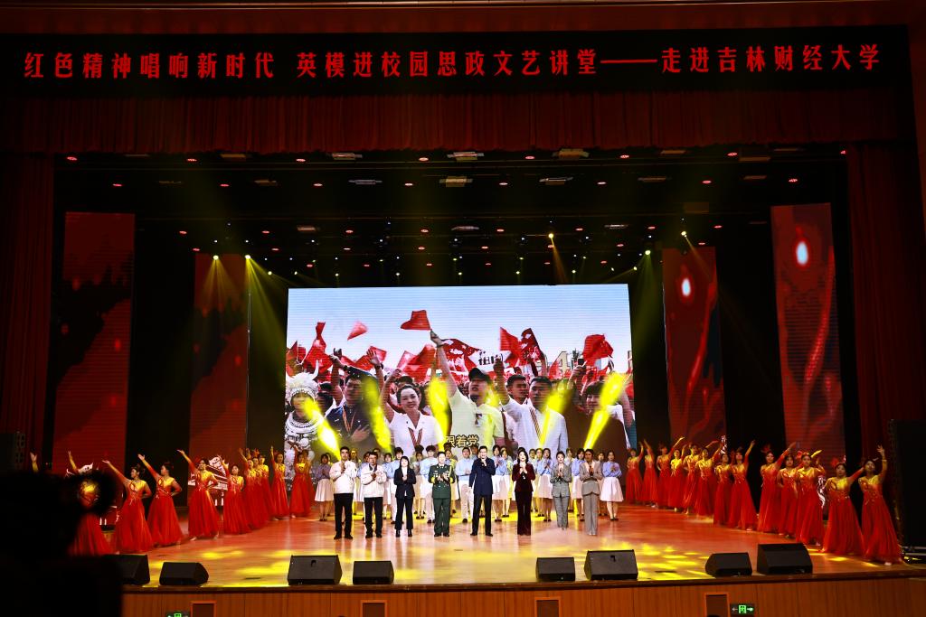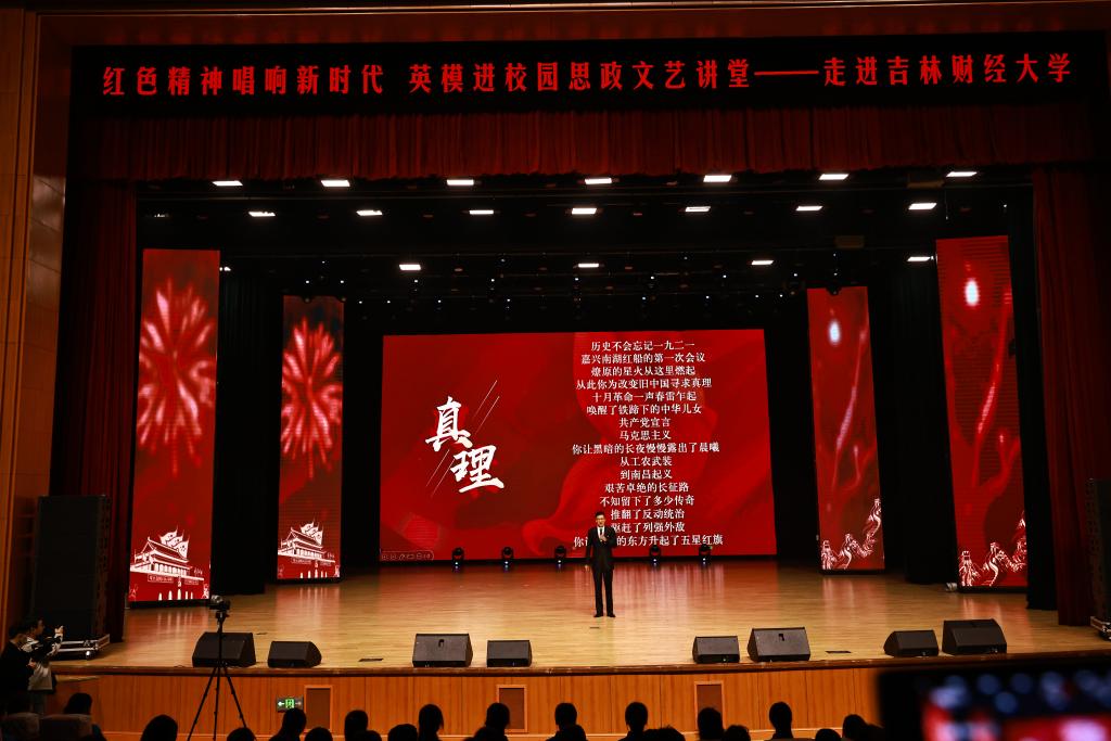 本次活动由吉林省功勋荣誉表彰工作领导小组办公室主办,省委宣传部、省人社厅、省总工会、省教育厅、省退役军人事务厅等单位联合主办,是吉林省推进高校“大思政课”建设的创新实践,更是红色精神与高校人才培养深度融合的生动探索。活动以王明明教授“红歌讲党史、红歌讲党课”成熟体系为核心,实现了“讲、唱、诵、互动”四维融合,让学子从被动聆听变为主动参与。英模代表零距离分享,让榜样力量可感可学,全流程融入的学生展演,让青年学子成为红色精神传承的主角,产生了“英模精神引领、青春力量回应”的双向共鸣。