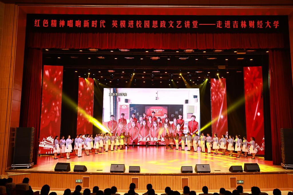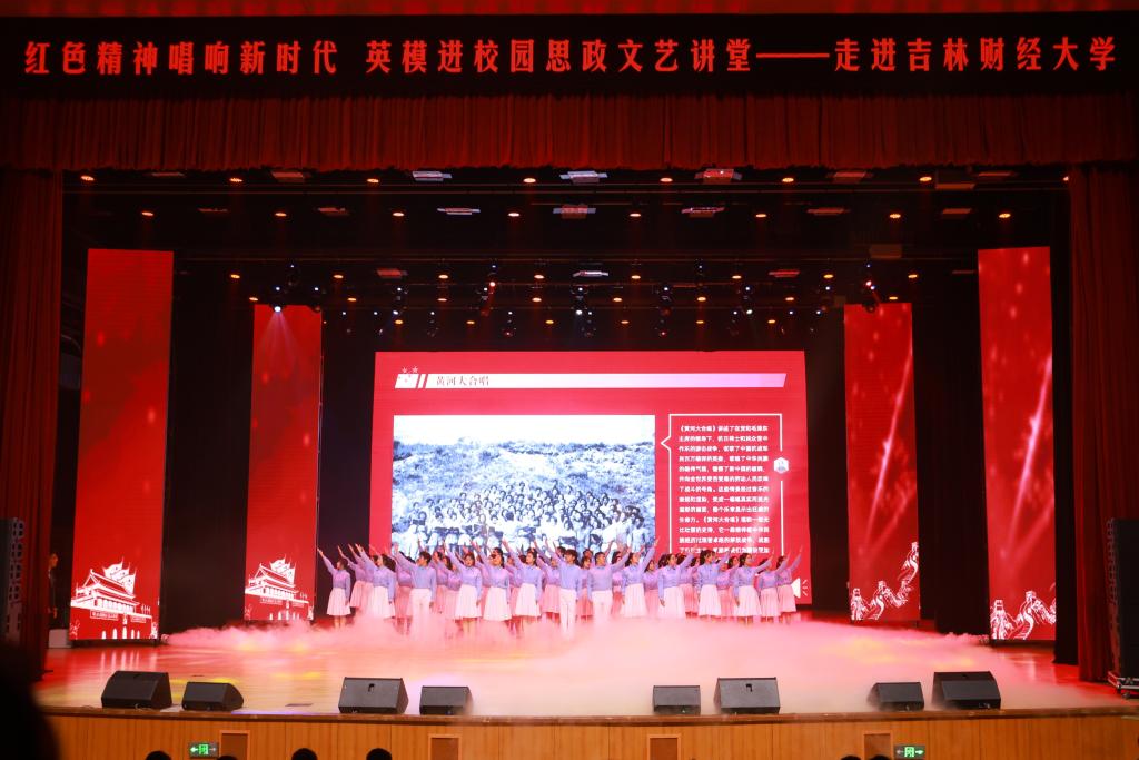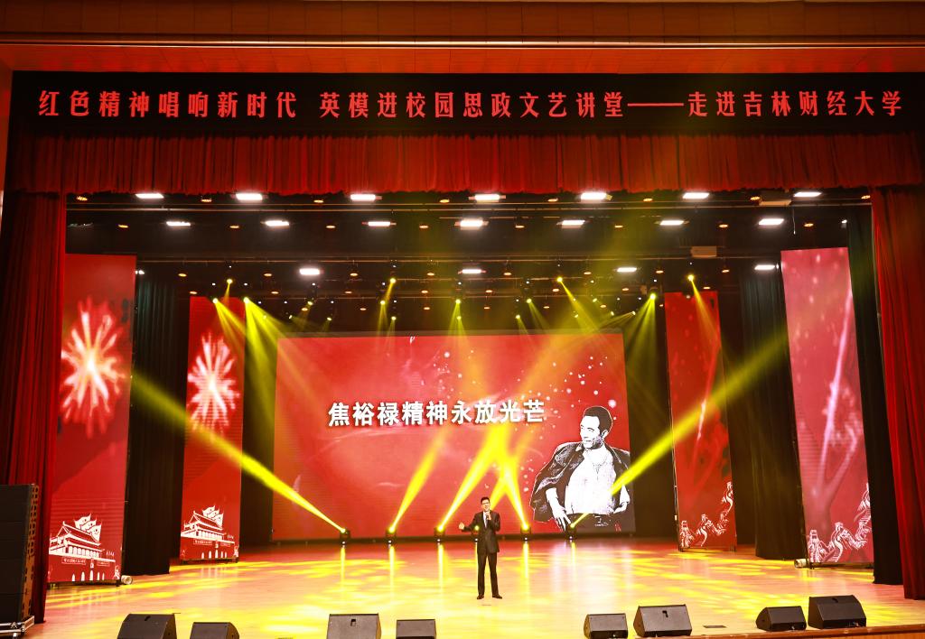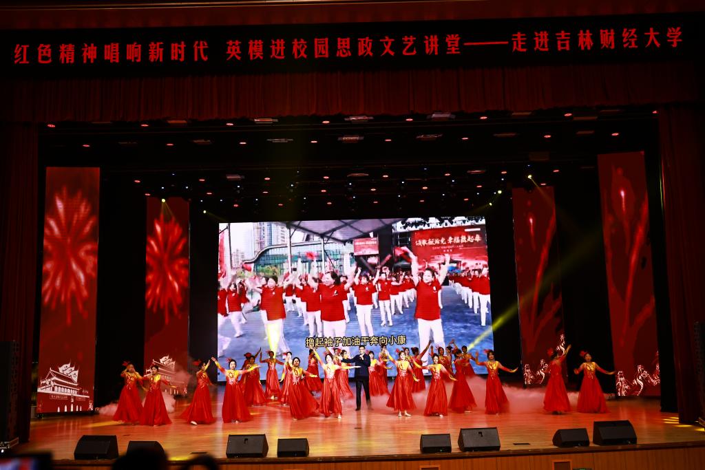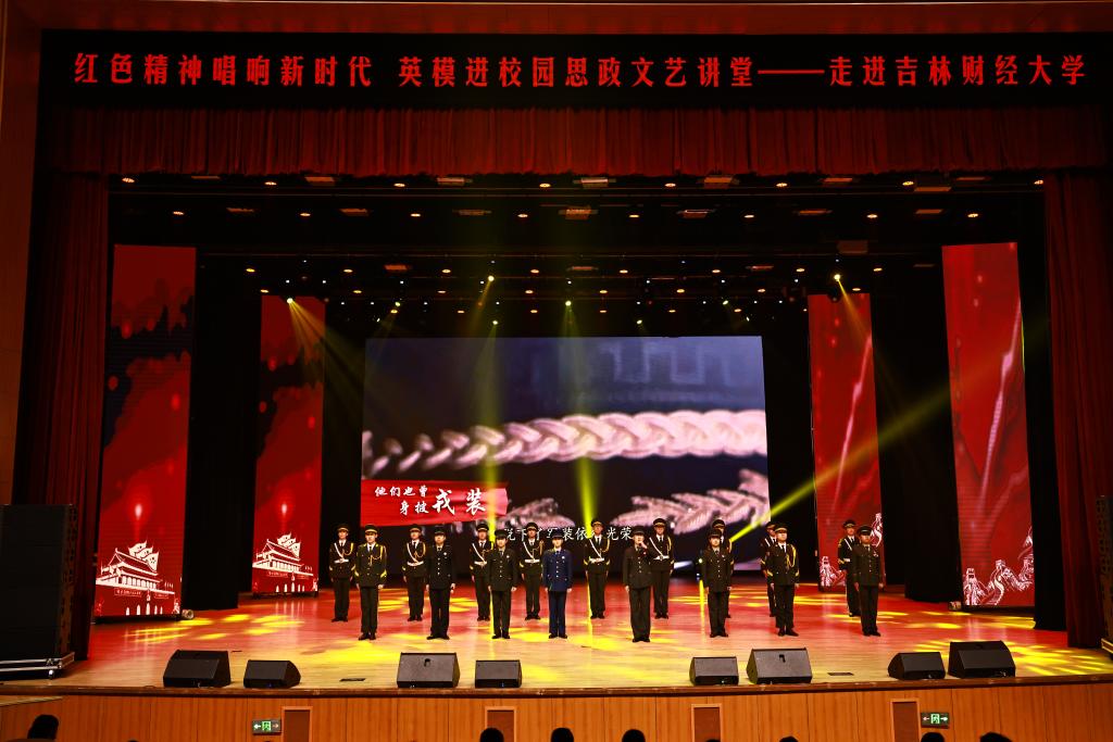 本次活动由吉林省功勋荣誉表彰工作领导小组办公室主办,省委宣传部、省人社厅、省总工会、省教育厅、省退役军人事务厅等单位联合主办,是吉林省推进高校“大思政课”建设的创新实践,更是红色精神与高校人才培养深度融合的生动探索。活动以王明明教授“红歌讲党史、红歌讲党课”成熟体系为核心,实现了“讲、唱、诵、互动”四维融合,让学子从被动聆听变为主动参与。英模代表零距离分享,让榜样力量可感可学,全流程融入的学生展演,让青年学子成为红色精神传承的主角,产生了“英模精神引领、青春力量回应”的双向共鸣。