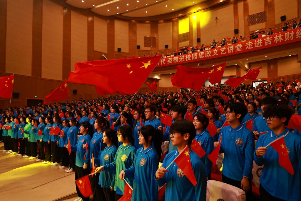 张炳辉指出,在全省深入学习贯彻全国两会精神、奋力推进 “十五五” 规划开局的关键节点,学校承办此次英模进校园思政文艺讲堂意义重大。活动紧扣 “大思政课” 建设要求,把红色基因传承、英模精神弘扬与高校立德树人根本任务深度融合,是浸润心灵的红色思政大课和凝聚力量的青春思想洗礼。他指出,本次活动邀请王明明教授带来特色红色宣讲,也迎来多位英模代表进校园,英模是时代榜样与青年楷模,他希望全体师生从红色精神和英模事迹中汲取奋进力量,将崇敬之情转化为实际行动,坚定信念、勤学笃行,努力成长为堪当民族复兴重任的时代新人,为国家现代化建设、吉林全面振兴取得新突破贡献吉财智慧与青春力量。张炳辉表示,学校会持续深化英模精神学习宣传,引导广大师生从英模精神中汲取奋进力量,把爱国情、强国志、报国行融入学习工作中,为国家现代化建设,为吉林高质量发展明显进位、全面振兴取得新突破贡献吉财智慧与青春力量。