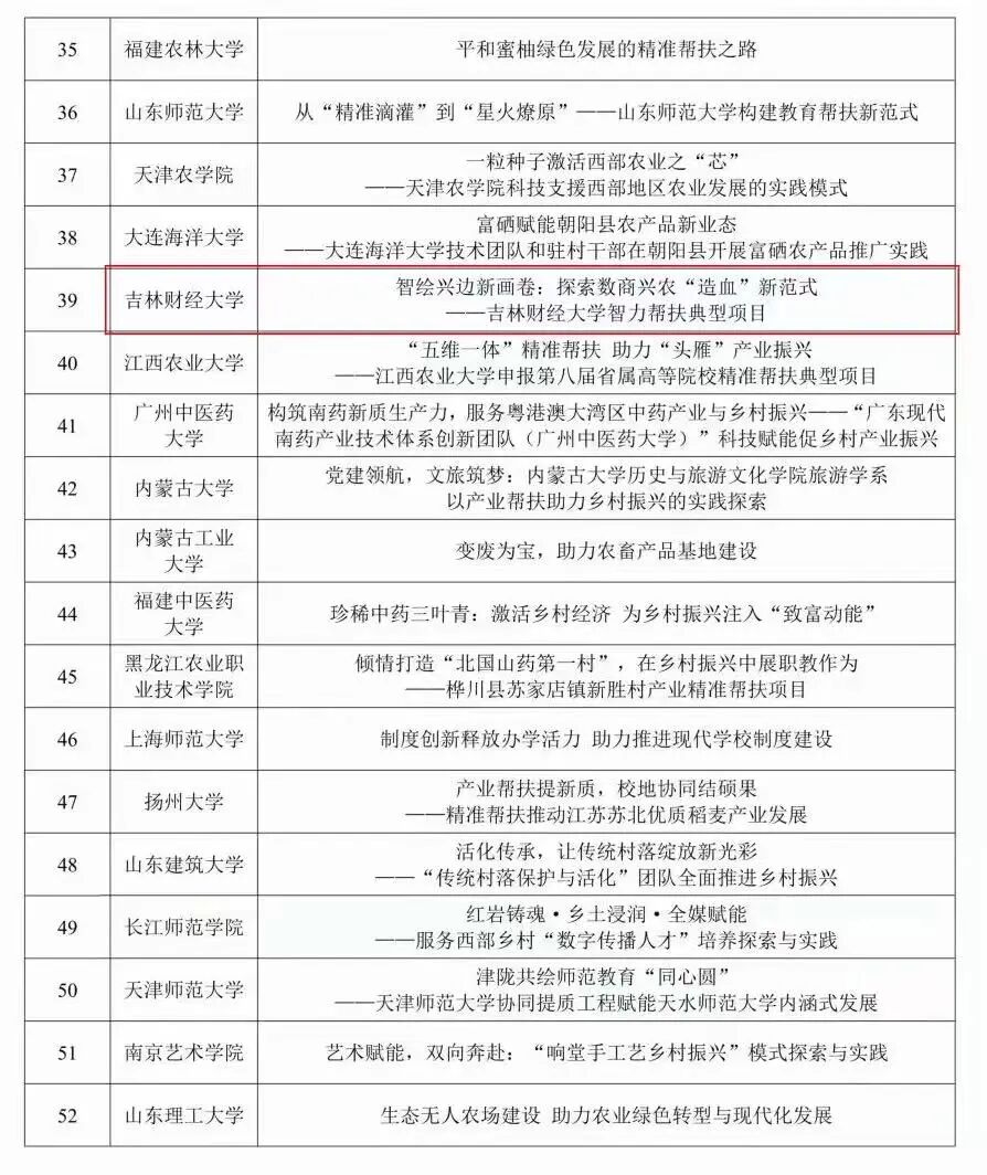 本网讯(校工会 供稿)近日,教育部发展规划司公布第八届省属高校精准帮扶典型项目推选结果。taptap点点申报的《智绘兴边新画卷:taptap点点体育探索数商兴农“造血”新范式》项目,在全国217个参评项目中脱颖而出,成功跻身66个典型项目之列,这既是教育部对taptap点点扎根基层、笃行赋能乡村振兴一线工作的充分肯定,更是学校立足财经学科优势、主动服务地方发展的生动实践。吉林省仅有两个项目入选。