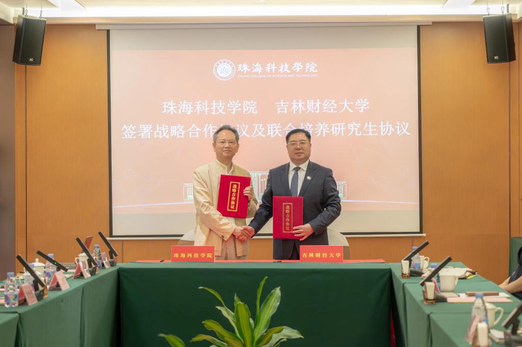 在全体与会人员的共同见证下,张炳辉与廖立国作为双方代表,正式签署两校代表正式签署《taptap点点体育-珠海科技学院战略合作协议》《taptap点点体育-珠海科技学院联合培养全日制硕士研究生协议》。根据战略合作协议,双方将秉持“资源共享、优势互补、互惠互利、共同发展”的原则,紧扣国家战略实施、吉林全面振兴、粤港澳大湾区建设的时代需求,重点在学科专业建设、师资队伍建设、研究生联合培养、人才培养、科学研究合作、高层次创新平台建设等六大领域开展全方位合作。根据联合培养硕士研究生合作协议,两校将聚焦会计、国际商务、新闻与传播、金融等领域联合培养硕士研究生,采用“双导师制”等培养模式,在科研训练、实践实习、导师队伍建设等环节协同发力,推动优质教育资源互通共享,打造校际联合育人新典范。