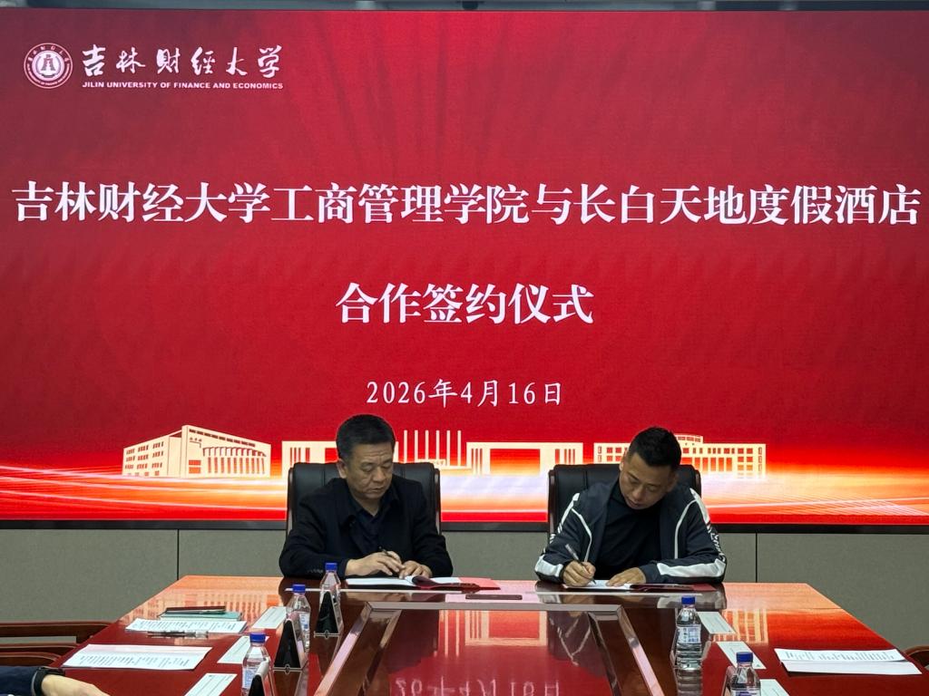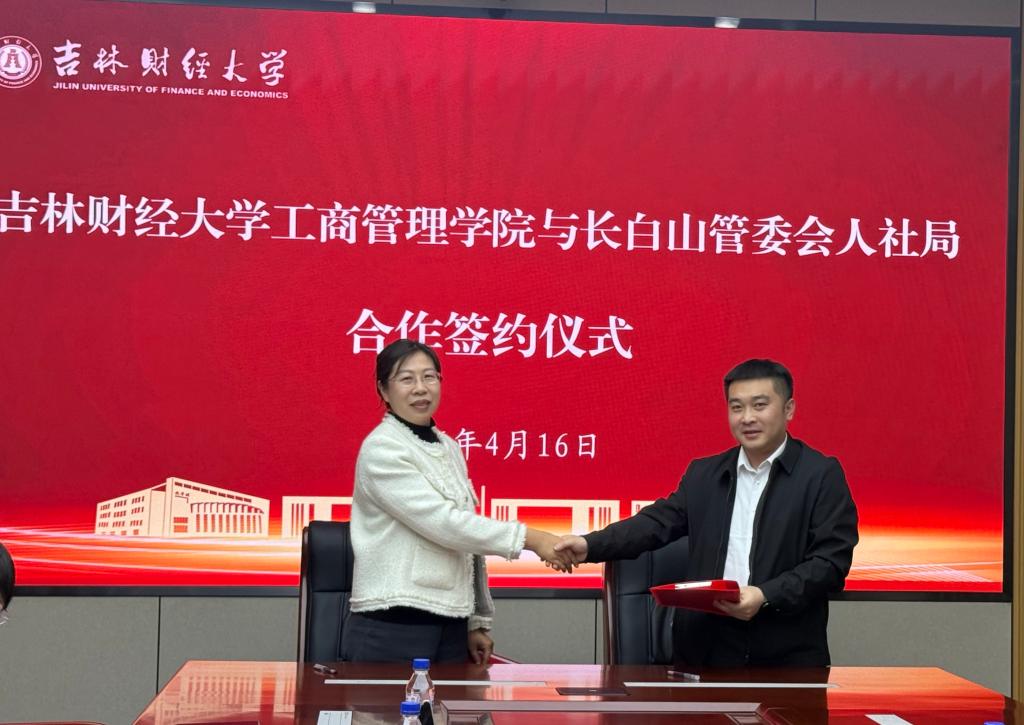 本网讯(工商管理学院 供稿)4月16日,工商管理学院与长白山管委会人社局、长白天地度假酒店举行合作共建实习实践基地签约仪式。副校长杨楠出席签约仪式并致辞。