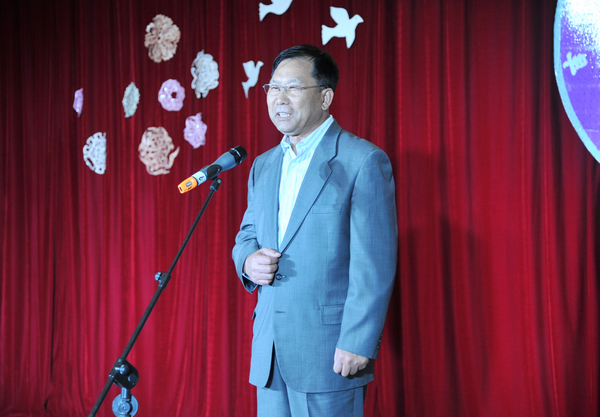 9时整,在庄严的国歌声中庆祝大会正式开始。大会由学校老年艺术团团长孙长山主持。为表达对离退休人员关怀、慰问和对老年艺术团的祝贺,学校送来了贺信与贺匾。校办公室主任于金欢宣读了贺信,校组织部部长迟柏龙、工会主席毕荣发分别代表学校、工会赠予老年艺术团题有“莫道桑榆晚,微霞尚满天”、“老当益壮,幸福人生”的贺匾。