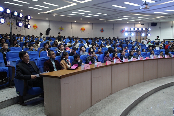 11月5日18:00,“经济学院20周年院庆暨2014级迎新晚会”在1101活动室盛大开幕。本次活动邀请到了首任院长孙宇晖教授、原副院长许桂娟教授、原教研室主任刘晓薇教授、第二任院长刘建华教授、第三任院长(现任校马研中心主任)郭殿生教授、当代经济研究编辑部副主任(我院硕士生导师)梁洪学研究员、校发展规划与学科建设办公室副主任(我院硕士生导师)魏旭教授、当代经济研究编辑部《资本论》编辑室主任(我院硕士生导师)黎贵才副研究员、法学院团委书记(毕业生代表)赖广添、国际交流学院团委副科级干事(毕业生代表)姜福奇等嘉宾;学院党政领导、全体教师、全体在校生出席了晚会。会场充满着回忆、感动和期冀,老中青三代经济学人和经济学莘莘学子欢声笑语、载歌载舞,充分营造了经济学院一家亲的温馨氛围。