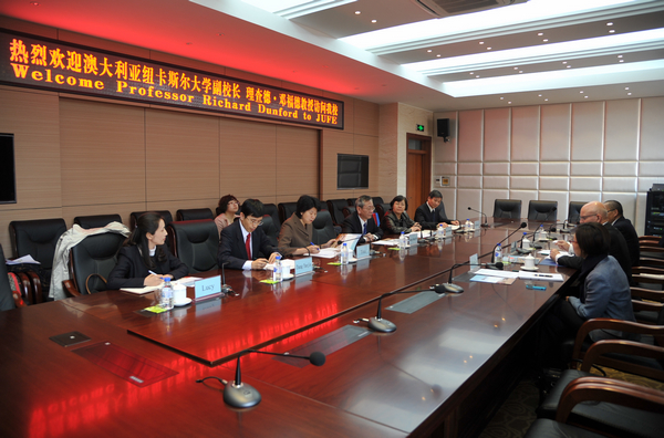 在综合楼第一会议室,校长宋冬林、副校长杨春梅、副校长张越杰和纽卡斯尔大学副校长理查德•邓福德、国际高等教育有限公司总裁戴文清先生进行了友好会谈。