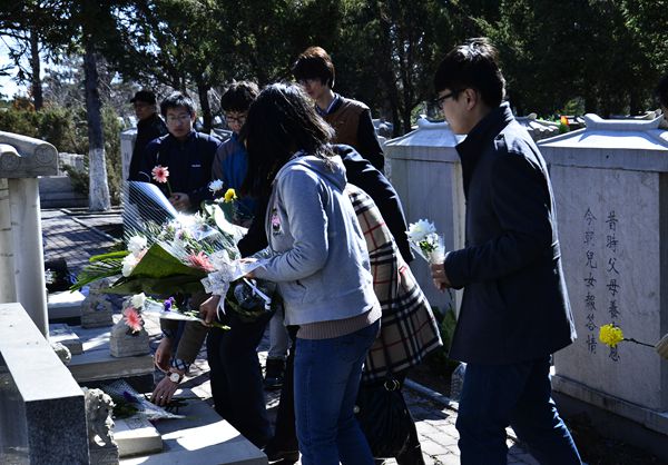 几位老师和学生记者清扫了“妈妈老师”吕金华墓碑上的尘土,献上了菊花。在吕金华老师的墓前,管清平老师首先表达了对吕金华老师的深切怀念,并向她汇报了学校和宣传部去年一年的变化和取得的成绩。校报编辑部郭建辉老师和王彬老师向“妈妈老师”吕金华致以深深的问候,汇报了校报工作和学生记者取得的成绩,并表示将继续发扬“妈妈老师”吕金华办报育人的精神,培养更多的优秀学生记者。