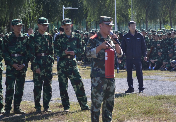 疏散演习结束后,在北门停车场东侧操场,净月消防大队演示了床铺起火、杂物起火等扑灭方法,并详细讲解了校园内配备的干粉灭火器的使用方法。同时,消防官兵还展示了大量的消防器材并对其一一解说。演示结束后,部分学生还进行了实际操作。