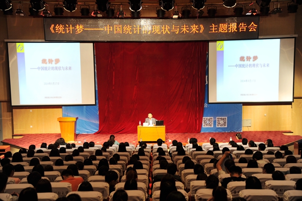 报告会由统计学院院长王静敏主持。在报告中,杜克成副总队长从统计的涵义、当前统计工作、统计发展现状、统计工作面临的形势和挑战、统计改革发展的基本思路、中国梦与统计梦等六个方面为在座师生解读了中国统计的现状和未来的发展;他结合自身的成长经历及从事统计工作的切身体验,为与会人员介绍了从事统计工作的感悟、统计工作的特点和未来的趋势。同时,也重点讲解了中国梦与统计梦的关系,并多次引用习近平总书记关于中国梦的阐述,勉励在校学生踏实上进,勇于追梦。