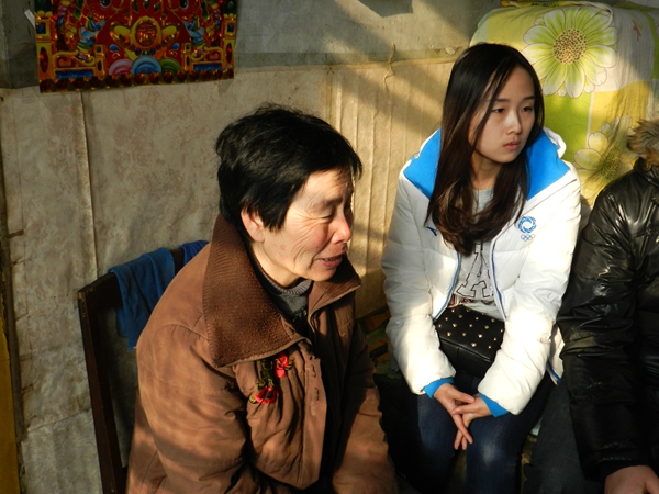 小雨婷的家离市区很远,一路上雪花飘飘洒洒。知道大家今天会来家里做客,奶奶把炕烧的很热,屋子很小,突然来了这么多人的家里显得格外热闹。代理妈妈小分队带去了米面、豆油、苹果等很多年货,代表全校师生给她们全家拜年。小雨婷长胖了,但还是那么爱笑、那么开朗;由于家里很少来这么多人的缘故,雨婷奶奶也特别开心,和大家聊起了家常,她说雨婷的眼睛现在彻底好了,再也没有同学取笑她,她和爷爷的心可算踏实了,说着说着抹起了眼泪。雨婷懂事地安慰着奶奶,并向大家汇报了期末考试的取得的好成绩,她和大家说今年就要中考了,她要加倍努力,争取考上一所好的中学。