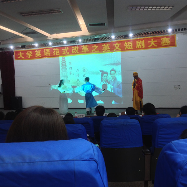 本网讯(公共外语教研部 供稿)经过一个多月的精心策划和准备,公共外语教研部大学英语范式改革系列活动——英语舞台剧于6月3日上午在第一教学楼1101教室落下帷幕。这不仅是大学英语范式改革的一个亮点,更是6个范式班学生展示英语水平、艺术能力和个人风采的绚丽舞台。