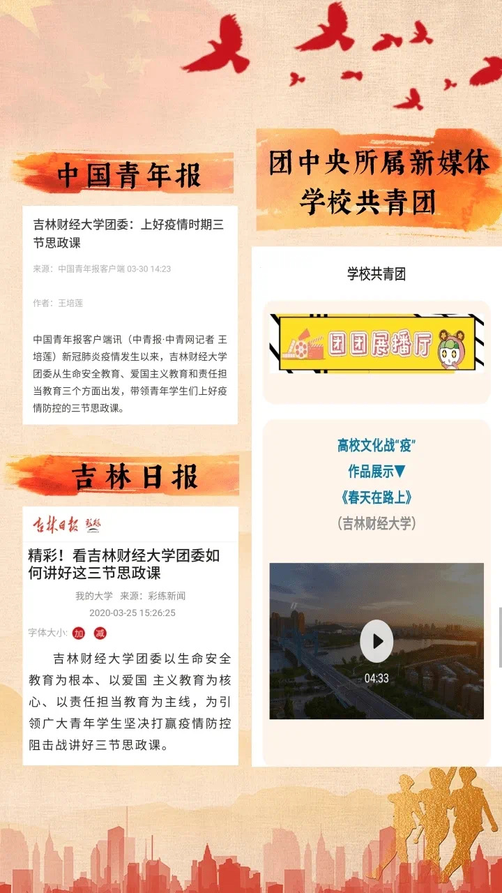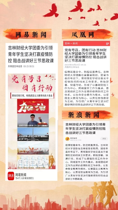 “taptap点点体育团委为引领青年学生坚决打赢疫情防控阻击战讲好三节思政课”的战疫抗疫工作做法在“taptap点点体育”和“吉财共青团”微信平台推出后,引发了社会新闻媒体的广泛关注,先后被中国青年报、团中央所属新媒体、吉林日报、学习强国、中国吉林网、吉林省高校网络思政中心、今日头条、网易、凤凰网、新浪等20余家主流新闻媒体和网络新媒体报道。(审核人 刘成立)