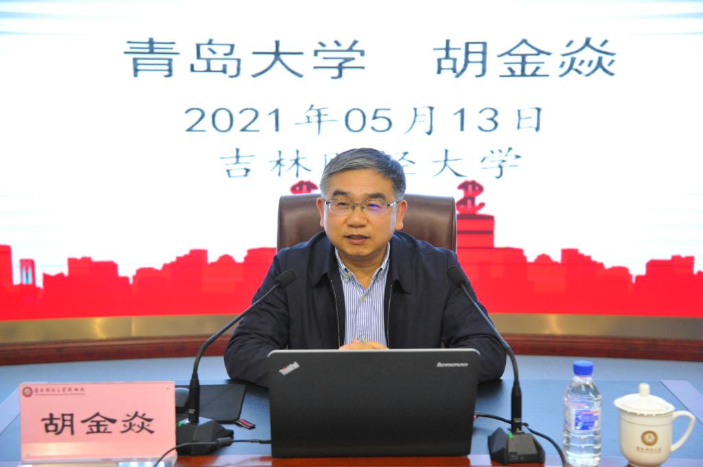 本网讯(科研处 供稿 摄影 杨舒淇 马子涵)5月13日下午,青岛大学党委书记胡金焱教授应邀做客“吉林财经大讲堂”,在吉林财经大讲堂报告厅作了题为“在新一轮教育教学改革中创新高校人才培养”的学术报告。会议由校党委副书记、校长孙杰光主持,校党委书记马尚、副校长刘鹤及各学院院长、教学副院长,教务处、科研处、发展规划与学科建设办公室、人事处、教师教学发展中心、创新创业教育学院等部门负责同志和教师代表参加了报告会。