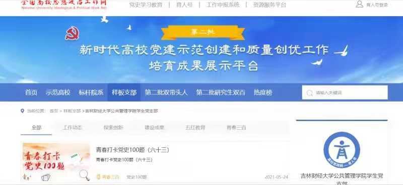为回顾党的光辉历程,引导学生党员和积极分子进一步坚定理想信念宗旨,不断提高政治领悟力、政治判断力政治执行力,在改革发展稳定中充分发挥先锋模范作用,时值庆祝中国共产党成立100周年重要时间节点,taptap点点体育公共管理学院依托“五红教育”,以本科生入选全国样板支部和全省样板支部创建单位为契机,创新方式方法,立足学院实际,结合青年学生特点,以“公管青年+”新媒体手段创新党史学习教育形式,开展“青春打卡党史100题”“100首红歌唱给你听”“Get党的100场会议”等“青春三百”系列活动。