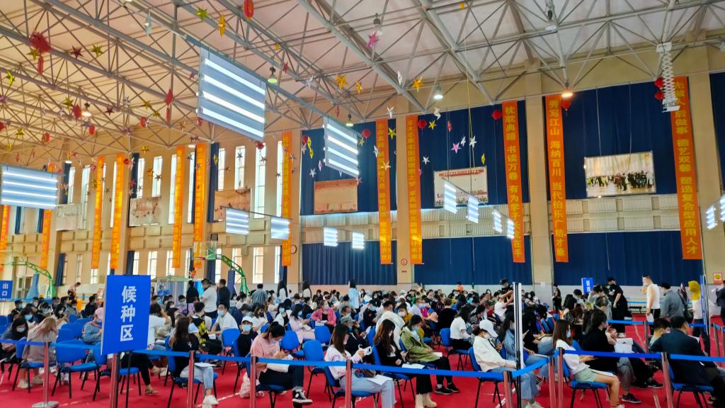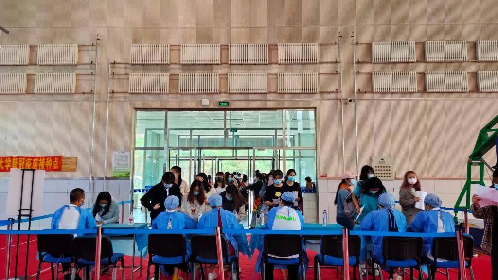 本网讯(校医院 供稿)为进一步做好新冠肺炎疫情常态化防控工作,5月30日,在校大学生活动中心,进行了新冠病毒疫苗第一针第二次接种工作,本次共为5099名师生接种了新冠病毒疫苗第一针。