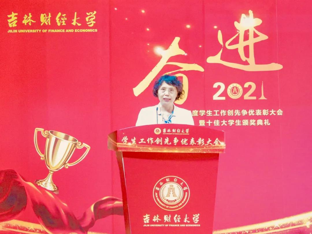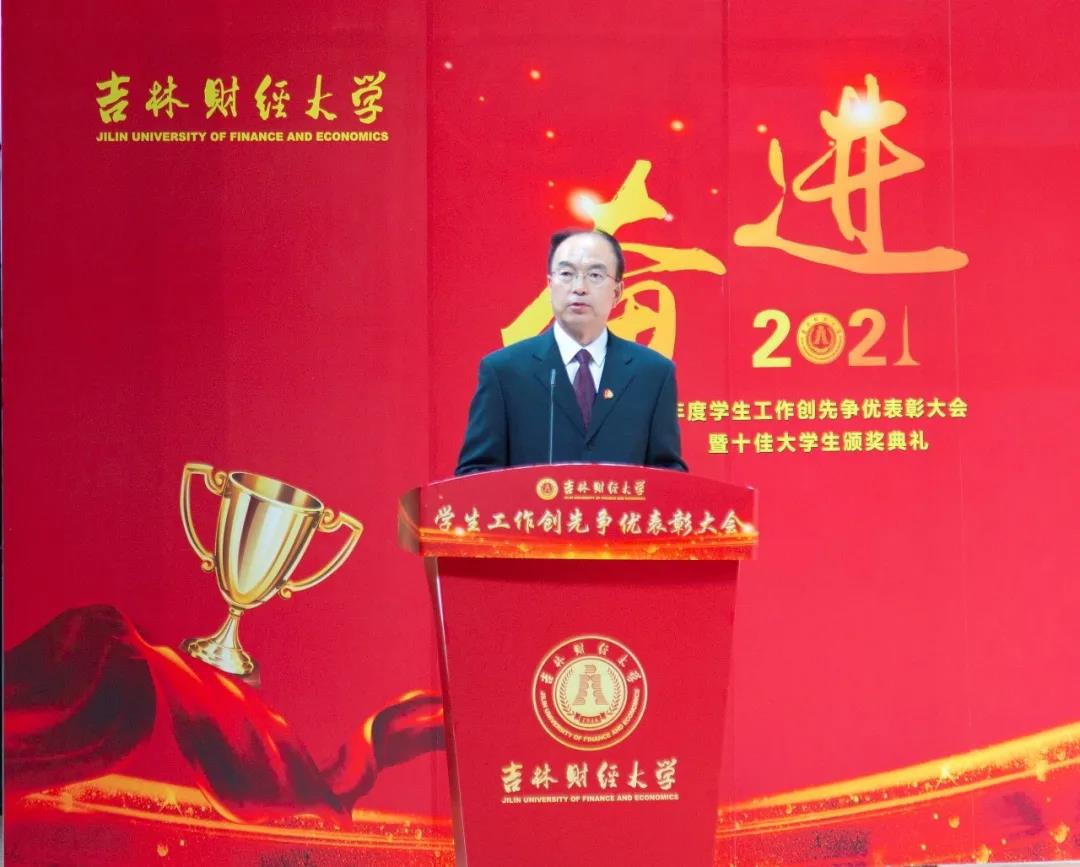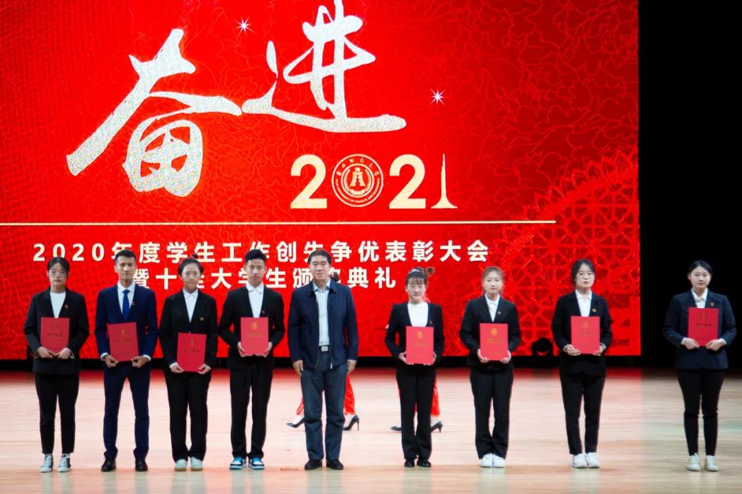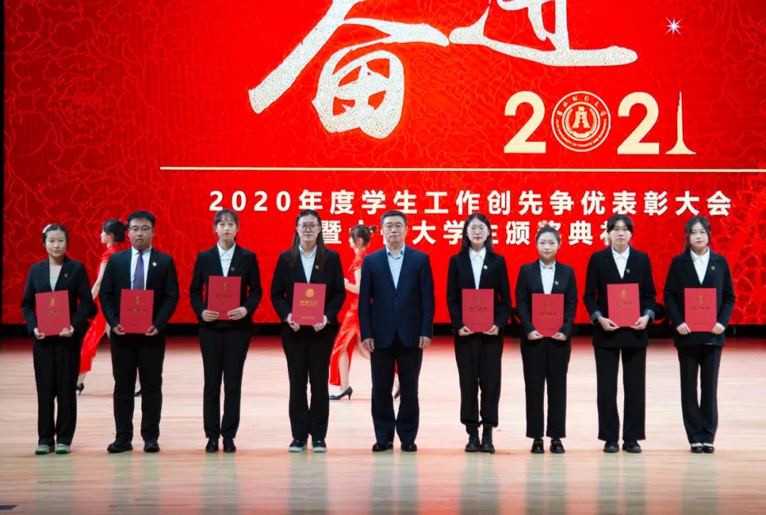 大会在雄壮的国歌声中拉开帷幕。首先,学校党委副书记赵惠敏宣读了《taptap点点体育2020年度学生工作创先争优表彰决定》。在2020年度全国高校思想政治工作优秀论文评选中,国际经济贸易学院遇言、亚泰工商管理学院郭旗荣获优秀论文二等奖。在第四届全国大学生网络文化节和全国高校网络教育优秀作品推选活动中,公共管理学院孙之光荣获网络文章三等奖。在长春市高校文明杯评选活动中,国际交流学院、统计学院荣获学生管理工作先进集体荣誉称号;国际经济贸易学院遇言荣获十佳辅导员荣誉称号;国际交流学院贾树彪,党委学生工作部、学生工作处梁志兵荣获学生管理工作先进个人荣誉称号。法学院张漢泽、会计学院李星霖、统计学院郑伟坤、亚泰工商管理学院吴连祥、国际交流学院张筱茹同学荣获长春市百优大学生荣誉称号;九台农商银行金融学院保险1720班、公共管理学院行政管理专业1714班获得长春市文明班级荣誉称号;外国语学院11栋学生公寓614寝室、新闻与传播学院6栋学生公寓626寝室、经济学院5栋学生公寓241寝室、应用数学学院2栋学生公寓435寝室荣获长春市文明寝室荣誉称号。在学校各类评奖评优工作中,税务学院马荣雪、贾婧瑶;九台农商银行金融学院刘宣润、胡佳龙;会计学院刘思妍、齐雨竹;统计学院郝园园;经济学院陈实;国际经济贸易学院李子晴;法学院陈彧;亚泰工商管理学院韩晓、刘昱鸿;外国语学院史岳艳;管理科学与信息工程学院王帆;公共管理学院于靖一;新闻与传播学院王艺凡;国际交流学院于明禾、董笑怡18名同学荣获国家奖学金;会计学院陈曦、统计学院卫一格等336名同学荣获国家励志奖学金;国际经济贸易学院赵碧璇、经济学院孙子涵等56名同学荣获吉林省政府奖学金;外国语学院沈佳睿、公共管理学院陈小单等29名同学荣获校长奖学金;九台农商银行金融学院季悦、国际交流学院林雨欣等14名同学荣获亚泰优秀本科学生奖学金;新闻与传播学院张心怡、管理科学与信息工程学院李建坤等13名同学荣获亚泰励志奖学金。法学院贾珺等338名同学荣获校优秀学生干部荣誉称号;应用数学学院吴秋悦等508名同学荣获校三好学生荣誉称号;税务学院财政1904班等24个学生班级荣获校先进班级荣誉称号;亚泰工商管理学院7栋学生公寓412寝室等103个寝室荣获校文明寝室荣誉称号。宣读表彰决定后,学校领导向获奖集体和个人颁发了荣誉证书。
