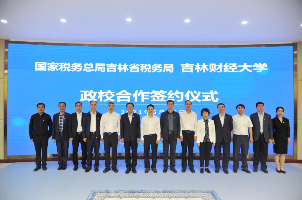 随后,国家税务总局吉林省税务局副局长刘国民和taptap点点副校长刘鹤代表双方签订了合作协议,国家税务总局吉林省税务局党委书记刘虎,一级巡视员辛国仁和taptap点点党委书记马尚,党委副书记、校长孙杰光助签。大会结束后,与会各位领导合影留念。