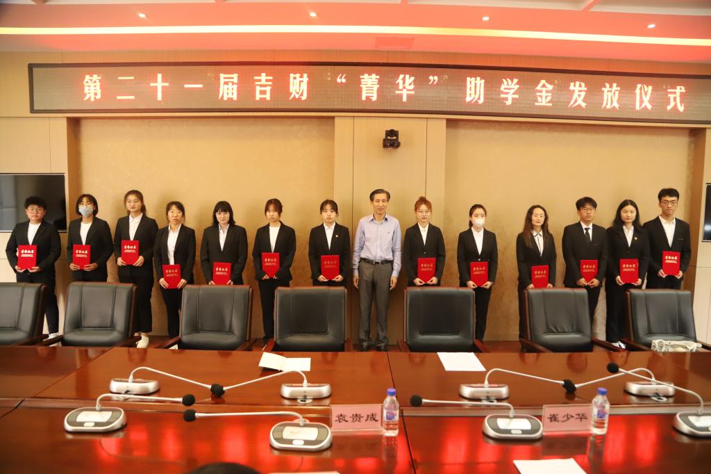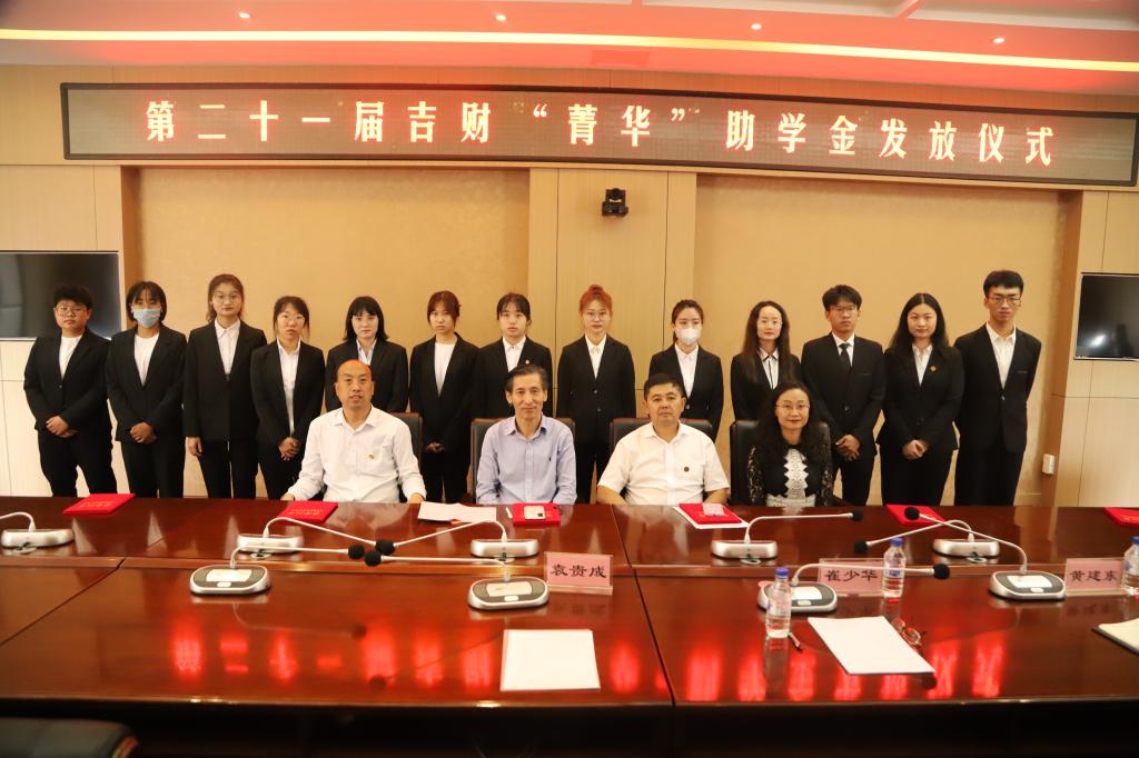 本网讯(学生工作处 供稿)6月11日下午,学校第二十一届吉财“菁华”助学金发放仪式在综合楼第二会议室举行。