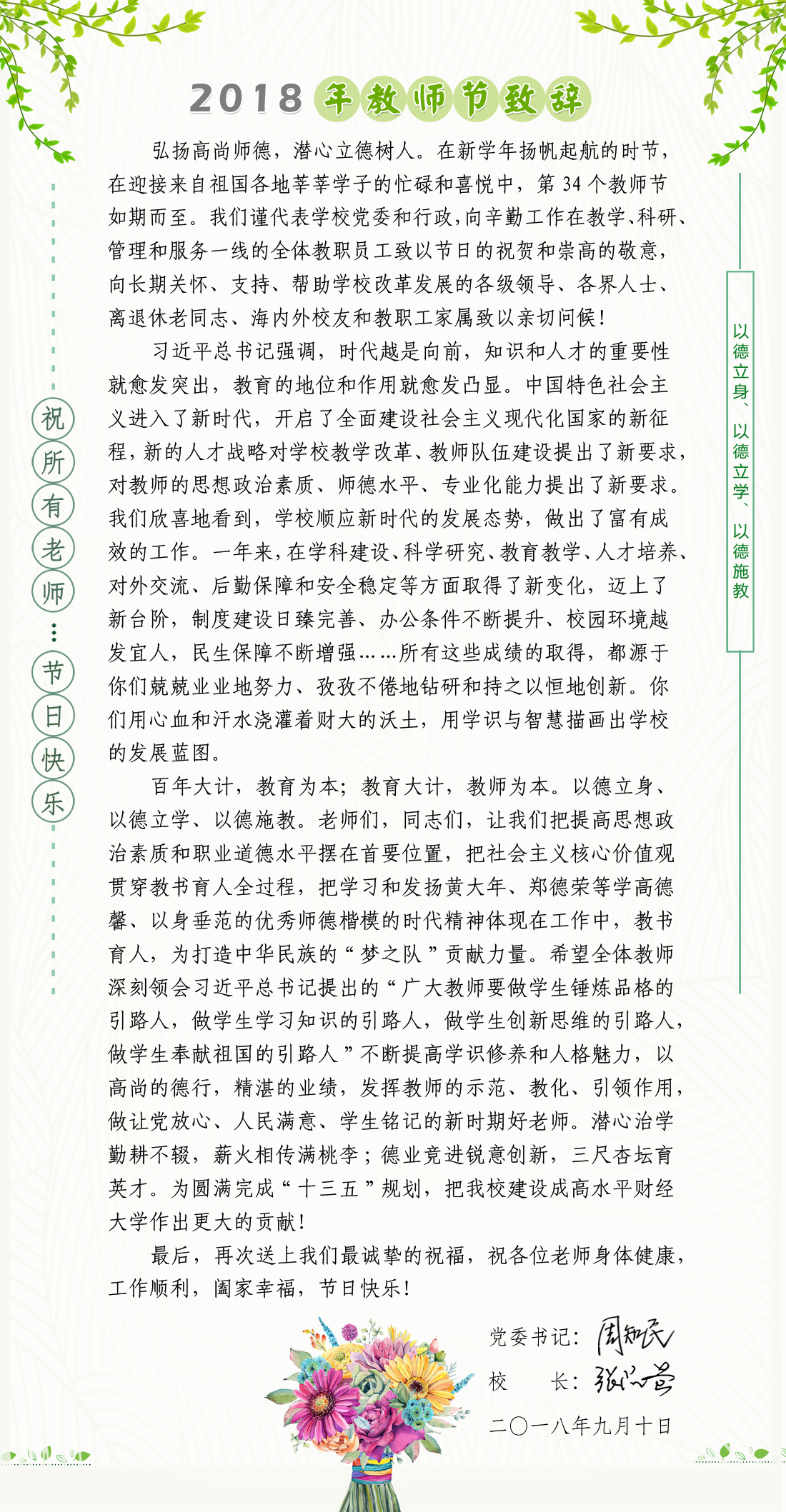 2018年教师节致辞
