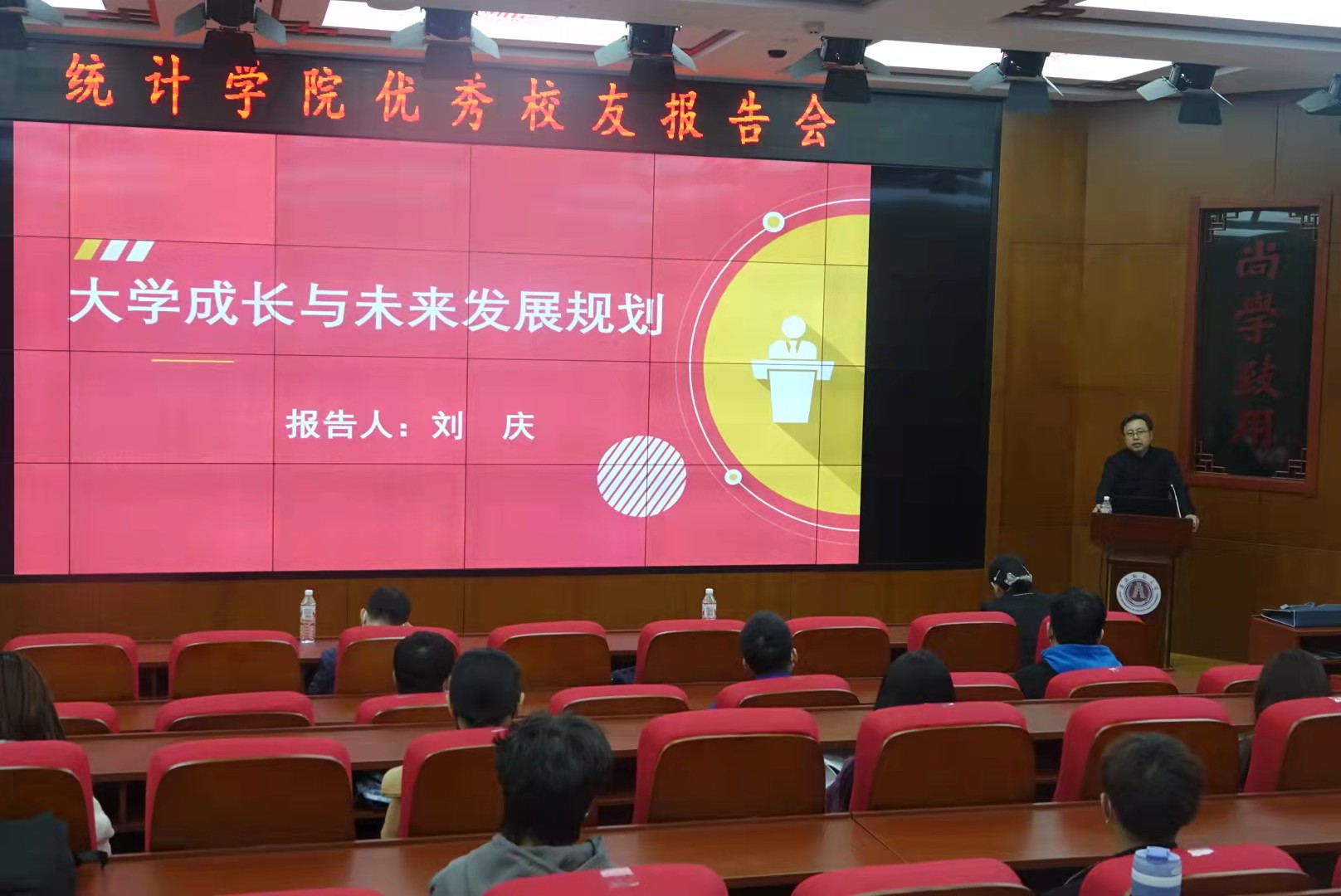 在“研究生职业规划与职业发展建议”报告中,刘庆教授向大家讲述了自己在学校成长、担任记者团长、专业学习、以及工作后办报过程中的经历,他从自身的职业经验分别与大家分享了在办报过程中应用的基本统计方法及取得的成效、在工作实践中坚持不懈克服遇到的一些困难的方法,及如何与团队成员合作等,他希望大家关注社会经济发展,用统计专业知识服务社会发展。