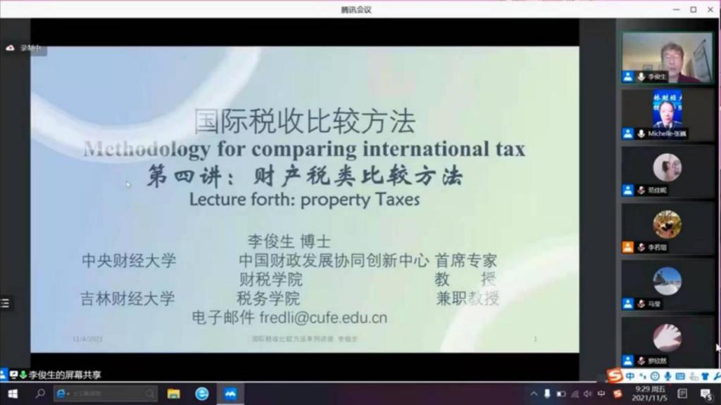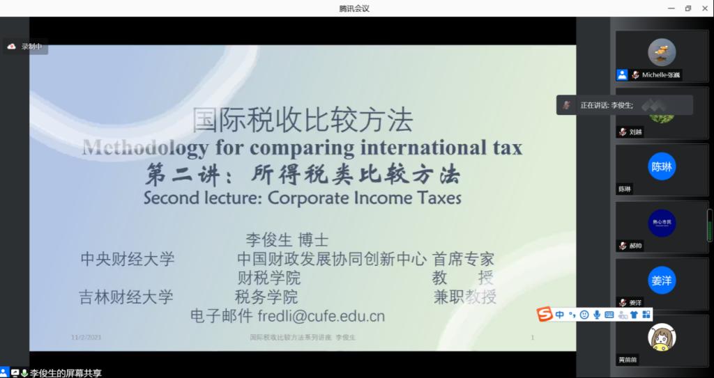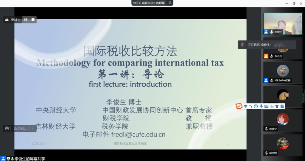 本网讯(税务学院 供稿)11月2日至5日,中央财经大学、taptap点点体育税务学院特聘教授李俊生通过腾讯会议为税务院师生开展了为期四天的线上授课,此次授课主题为“国际税收理论与前沿实践”。税务学院院长张巍、副院长马莹、中央财经大学财政税务学院副院长何杨、中国财政发展协同创新中心副主任姚东旻、中央财经大学部分博士生以及我院2020级、2021级研究生100余人参加了此次云间系列课程。
