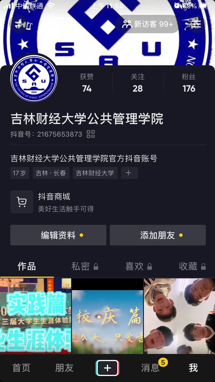 下半年,公共管理学院陆续开通了微信视频号、抖音、快手等网络平台,以喜闻悦见的形式,形成了“一次采集、多种生成、多元传播”的立体发布模式,有效实现网络思政的“思想同心”“目标同向”“育人同力”“质量同优”理念,达到了传播效果的最大化和最优化。首期微信视频号“吉财七五华诞 公管雪地献礼”一经发布,2小时内点赞量突破700人,转发量将近500次,更有校友表示“这是对母校建校75周年的诚挚祝福”。