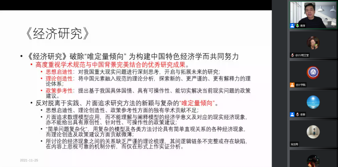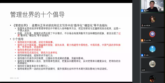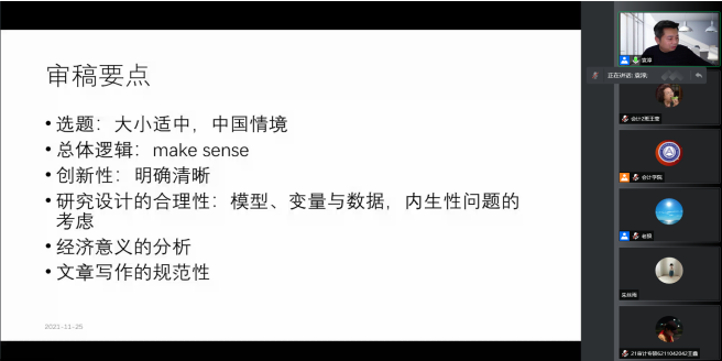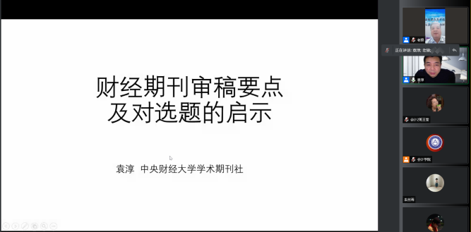 本网讯(会计学院 供稿)11月25日下午19:00,中央财经大学会计学院教授、博士生导师袁淳教授应taptap点点会计学院邀请,以线上腾讯会议的方式为我院师生作出主题为“财经期刊审稿要点及对选题的启示”的学术报告。本次会议由会计学院院长梁毕明教授主持,taptap点点体育会计学院、科研处、吉林省企业财务与会计研究中心联合主办。与会人员主要包括会计学院教师、2021级全日制硕士研究生共同参与聆听。