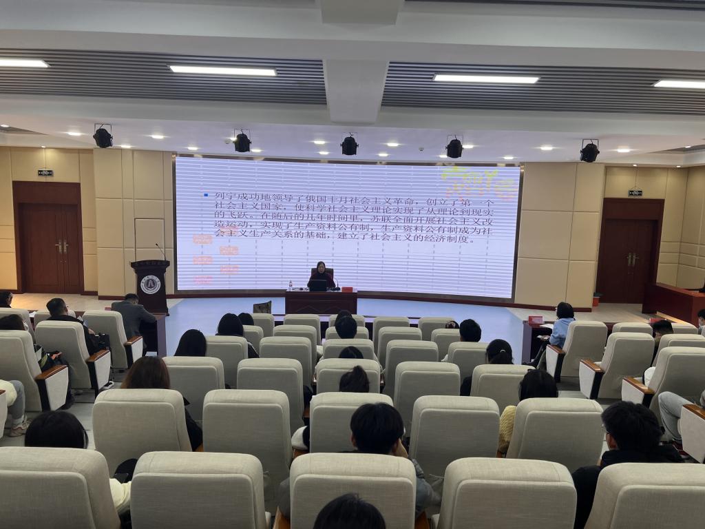 最后,刘艳龙副院长对本次活动进行总结。他指出,周晓梅老师关于十九届六中全会党的决议中社会主义经济制度的相关内容做了一场精彩报告。周老师从生产关系要适应生产力发展规律、解决社会主义新时代的主要矛盾和促进社会主义经济健康发展三个方面,讲解了党毫不动摇坚持、巩固、发展公有制经济,毫不动摇鼓励、支持、引导非公有制经济的相关内容。周老师的报告,从引用马克思主义经典作家的相关论述讲起,阐述中国共产党在理论上的相关创新,详细为我们梳理了社会主义基本经济制度在理论上的发展演绎,紧密联系我国社会主义经济建设的实践,内容丰富,讲解详实,为我们进一步学习十九届六中全会精神起到促进作用。(审核人 张洪梅)