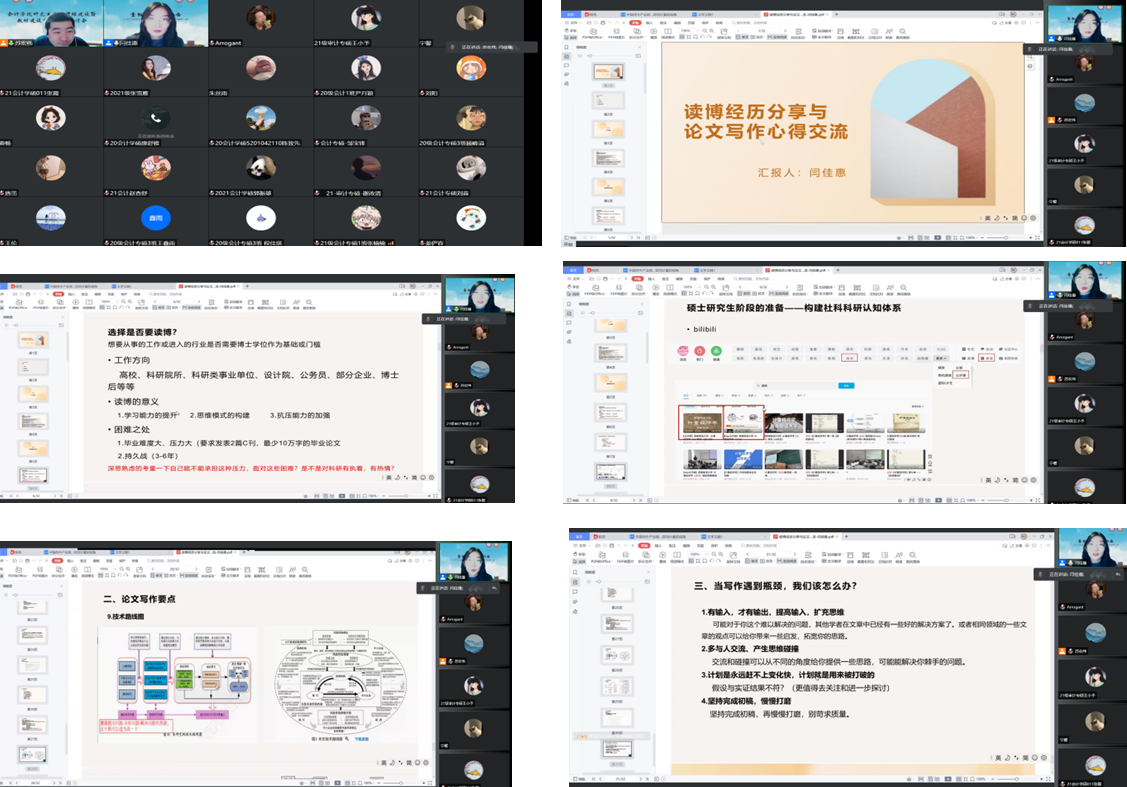 本网讯(会计学院 供稿)疫情特殊时期,为丰富和充实研究生业余活动和提升科研水平,加强疫情期间会计学子的思想引领和教育教学, 全面做好疫情防控工作,taptap点点体育会计学院举行党旗领航共抗疫,守护校园创平安”系列校友活动,主要组织优秀校友开展系列专题讲座, 3月23日下午18:00,由吉林农业大学农业经济管理专业博士生、taptap点点体育会计学院2016届会计学硕士研究生闫佳慧师姐,以线上腾讯会议方式为我院学生作主题为“读博经历与论文写作心得分享”学术报告。本次会议由会计学院专硕教育中心主任苏宏伟老师主持,会计学院2020、2021级全日制研究生以及部分本科生计三百余人共同参与聆听。