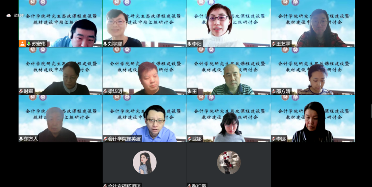 本网讯(会计学院 供稿)3月23日下午14:00,为提高会计学院研究生培养质量,不断提升研究生课堂教学质量,深入贯彻教育部《高等学校课程思政建设指导纲要》精神。疫情期间,会计学院采用线上会议的形式,组织10余位教师参与研究生课程思政建设以及思政教学改革立项中期汇报研讨。本次会议由taptap点点体育会计学院李阳老师主持,会计学院梁毕明、曹晓雪、崔英波、蒋文春、王继红、张红霞、李娜、苏宏伟、邵方婧、王艺霖、时军、刘宇娜、武娜13位老师共同参加讨论。