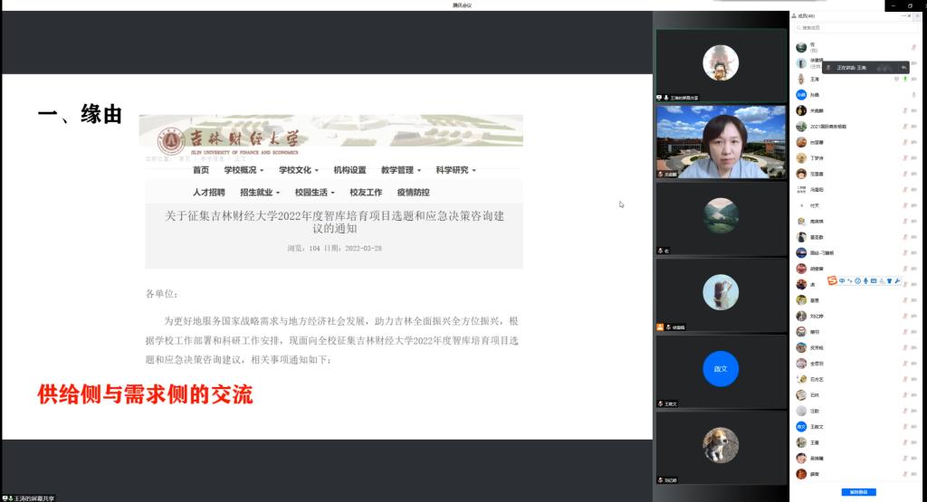 本网讯(国际经济贸易学院 供稿)为响应taptap点点征集智库培育项目选题和应急决策咨询建议的号召,提高教师撰写决策咨询报告的能力和水平,3月30日晚,应国际经济贸易学院邀请,中共吉林省委决策咨询办秘书处王涛处长,通过腾讯会议为学院师生作了题为“如何撰写好决策咨询报告”的学术报告。本次报告会由国际经济贸易学院副院长关嘉麟教授主持。