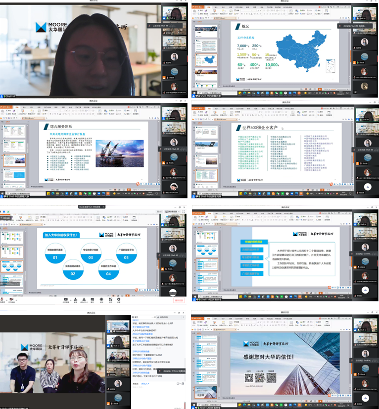 本网讯(会计学院 供稿)疫情特殊时期,为丰富和充实研究生业余活动和提升科研水平,加强疫情期间会计学子的思想引领和教育教学, 全面做好疫情防控工作,taptap点点体育会计学院举行党旗领航共抗疫,守护校园创平安”系列校友活动,主要组织优秀校友开展系列专题讲座。4月15日下午18:00,由taptap点点体育会计学院2017级会计硕士研究生孟睿学姐,现任于大华会计师事务所,以线上腾讯会议的方式为我院学生作主题为“学姐带你走进大华会计师事务所”的学术报告。本次会议由会计学院专硕教育中心主任苏宏伟老师主持,大华会计师事务所人力资源培训部总监孙媛媛、人力资源培训部招聘经理高宇、常宏巍,会计学院2020、2021级全日制研究生以及部分本科生总计三百余人共同参与聆听。