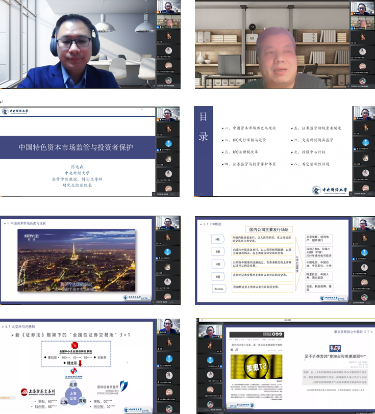 本次“中国特色资本市场监管与投资者保护”学术报告共分为8个方面,包括中国资本市场历史与现状、IPO发行审核与定价、IPO注册制改革、证券监管与投资保护体系、证券监管领域重要制度、交易所问询函监管、投服中心行权以及其它创新性话题等。第一部分,陈运森教授通过梳理中国资本市场发展历程,将资本市场划分为三个阶段,并指明了我国多层次资本市场未来发展方向以及多层次资本市场新时代;第二部分,陈运森教授阐述IPO的概念,列举国内公司主要发行场所,并讲述IPO发行审核制度,将审批制、通道制、保荐制、注册制进行详细解读;第三部分,陈教授围绕科创板背景、审核流程、定价制度、发行制度、特点以及创业板注册制、北交所与注册制展开讲解;第四部分,陈运森教授就证券监管类型、证券监管体系与中国资本市场监管背景等问题进行描述;第五部分是证券监管领域重要制度,陈教授详细讲述资本市场近期重要法律规章制度;接着,陈运森教授讲述交易所问询函监管部分,包括制度背景、交易所问询函监管的基本逻辑、财务报告问询函数量统计;第七部分,陈教授讲解了投服中心行权的制度背景与基本逻辑,并统计投服中心提问类型;最后,陈运森教授为与会人员展示了其他创新性话题。(审核人:梁毕明)