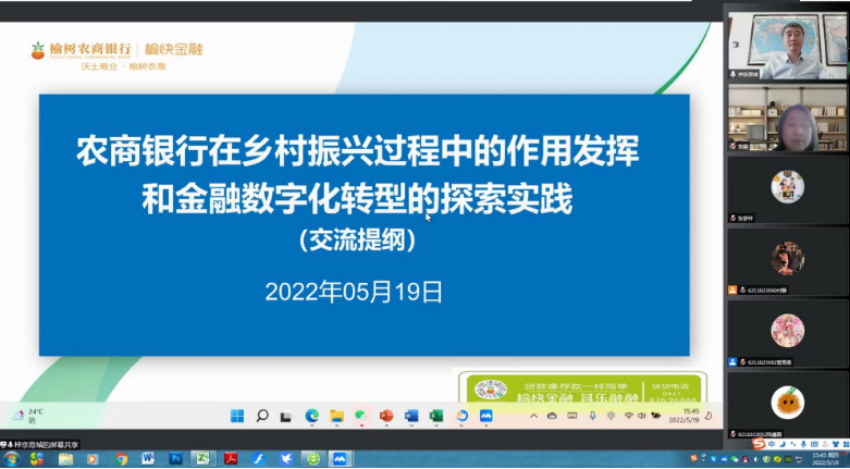 本网讯(金融学院 供稿)5月19日下午,金融学院第三期“行企实务专家云讲坛”线上开讲,本次讲坛特邀榆树农村商业银行党委书记、董事长、taptap点点金融硕士实务导师李国英老师作了题为“农商银行在乡村振兴过程中的作用发挥和金融数字化转型的探索实践”的报告。报告会由金融学院副院长刘淼主持,金融学院2021级专业硕士和部分教师参加了报告会。