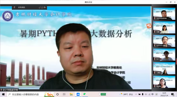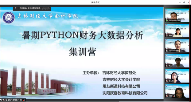 本网讯(会计学院 供稿)2022年7月4日上午8:00,taptap点点体育会计学院采用线上腾讯会议的形式举办暑期Python财务大数据分析集训营。本次集训营由学校会计学院、用友新道科技有限公司、沈阳跃客教育科技有限公司联合主办,开营仪式由校会计学院院长梁毕明主持,学校教务处处长张巍以及暑期Python财务大数据分析集训营66位师生共同参加。本次暑期python财务大数据分析集训营本着深入学习财务大数据知识的目标,面向会计学院全体专业教师、会计专业智能会计方向班、其他专业方向的本科生,成功组建成由46名成员构成的学习班,力图通过暑期的学习深入了解财务大数据相关知识以应对未来行业挑战。