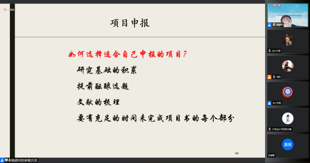 本次报告一共分为两个部分。一是实证研究论文的选题及撰写经验。隋建利教授从期刊论文和学位论文两个方面展开,分别从题目、摘要、引言、模型构建、实证研究、结论与启示、参考文献以及投稿要点等角度进行讲解。隋教授指出,期刊论文的选题要注重新颖性,主要服务于国际、国内环境的迅速变化,同时需要发现独特的研究视角以及重要的研究结论,其政策启示要有重要价值;关于期刊论文的审稿,隋教授表示,内部编辑重点关注的是选题,外审主要关注内容,要重视修改后再审的机会。对于学位论文的撰写,隋教授认为其规范性与严谨性和期刊论文是共通的,但期刊论文最重要的是创新性,学位论文最重要的是规范性。二是如何进行项目申报。隋教授就自身近十年项目申报的经验和时间线进行分享,针对国家自然科学基金、国家社会科学基金以及教育部项目的申请进行讲解。隋教授表示,国家自然科学基金虽有字数限制,但不设定选题,申报过程中要注重研究题目创新型、内容丰富性、方案可行性等事项;对于国家社会科学基金,隋教授指出,其与国家自然科学基金的不同点在于具有严格的字数限制和版面限制,侧重点是研究的具体问题,关键是对指南中的方向性题目或具体题目进行解题;对于教育部项目其不设定选题,与国家自然科学基金较相似,但对于字数及版面仍有较严格的要求,与社科基金类似。隋教授认为,要根据研究基础的积累、选题的酝酿、文献的梳理以及充足的时间安排等方面综合考虑,选择适合自身申报的项目。(审核人 梁毕明)