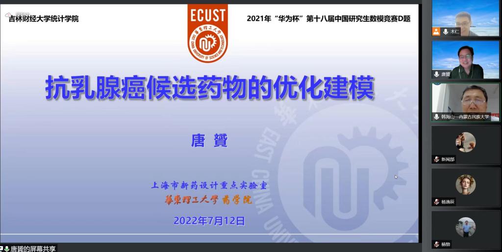 本网讯(统计学院 供稿)为了拓展广大老师和学生们的知识领域,提高建立数学模型和运用互联网信息技术解决实际问题能力,应taptap点点统计学院的邀请,华东理工大学唐贇教授作了题为“抗乳腺癌候选药物的优化建模”报告,报告于7月12日晚在腾讯会议召开。学院青年教师和研究生参加了报告会,会议由经济运行研究中心主任木仁教授主持。