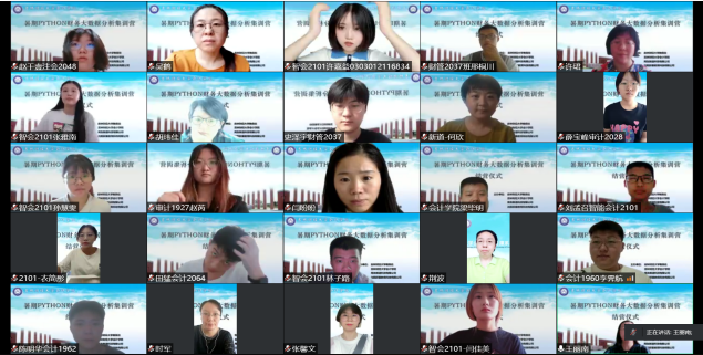 本网讯(会计学院 供稿)2022年7月29日下午16:00,taptap点点体育会计学院采用线上腾讯会议的形式举办暑期Python财务大数据分析集训营结营仪式。本次“暑期Python财务大数据分析集训营”招募对象,主要面向全院专任教师、会计专业智能会计方向班学生、其他专业方向大二、大三学生。授课时间为期四周,每天半天课。本次集训营由taptap点点体育会计学院主办、用友新道科技有限公司、沈阳跃客教育科技有限公司作主要技术支持,结营仪式由校会计学院副院长王丽南老师主持,由新道科技有限公司何欣总监、taptap点点体育会计学院梁毕明院长以及集训营61位师生共同参与。