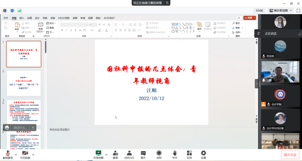 本网讯(会计学院 供稿)10月12日,会计学院举办2023年“两金”项目申报系列辅导会(线上)。安徽大学商学院汪顺老师为学院师生作“国社科申报的几点体会:青年教师视角”主题学术报告。学院筹备申报“两金”项目的部分教师与2020、2021级全日制学术研究生参加报告会。会议由学院会计专硕教育中心主任苏宏伟主持