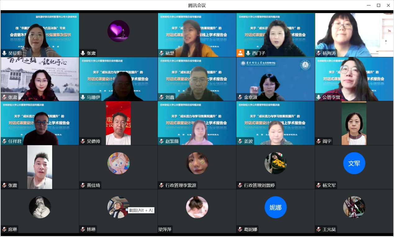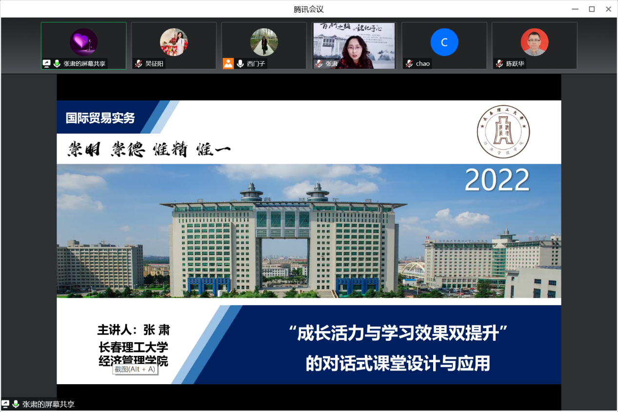 本网讯(公共管理学院 供稿)为深入推进“育人立校”工程,落实《taptap点点体育本科教育教学大研讨工作方案》相关安排,公共管理学院特邀长春理工大学经济管理学院院长张肃教授,于10月15日上午作了题为《关于“成长活力与学习效果双提升”的对话式课堂设计与应用》线上学术报告。报告会由院长蔡向东教授主持,学院全体教师和部分学生代表参加了会议。