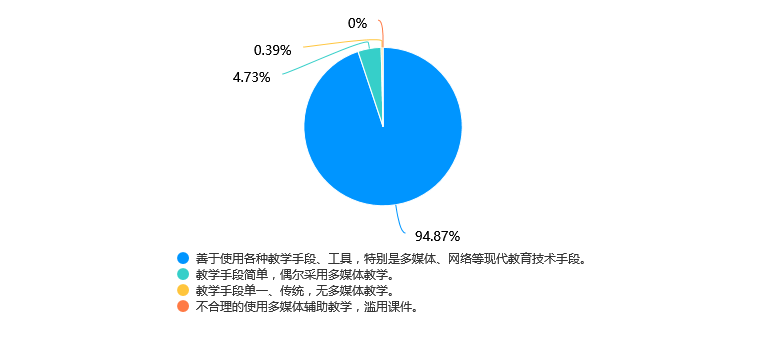 同时为进一步了解taptap点点学生外语学习现状、了解学生外语学习的需求,为公共外语教学改革提供参考,公共外语教研部于2022年11月16— 11月20日通过问卷星在全校2021级和2022级开展了大学英语系列课程的调查问卷活动,此次调查共回收有效问卷3348份。调查结果表明:学生对大学英语系列课程的教学效果满意度均超过了88%。94.87%的老师能够熟练使用各种教学手段、工具,特别是多媒体、网络等现代教育技术手段。92.84%的学生认为大学英语教学中教师不仅仅传授了知识,提升学生语言能力的同时也强化了对学生的价值引领。反馈结果显示教师教学投入的时间和精力得到了学生的认可。95%以上学生认为教师课前做了大量的准备工作,课中教学组织合理,课后及时辅导答疑,确保了教学顺利实施。