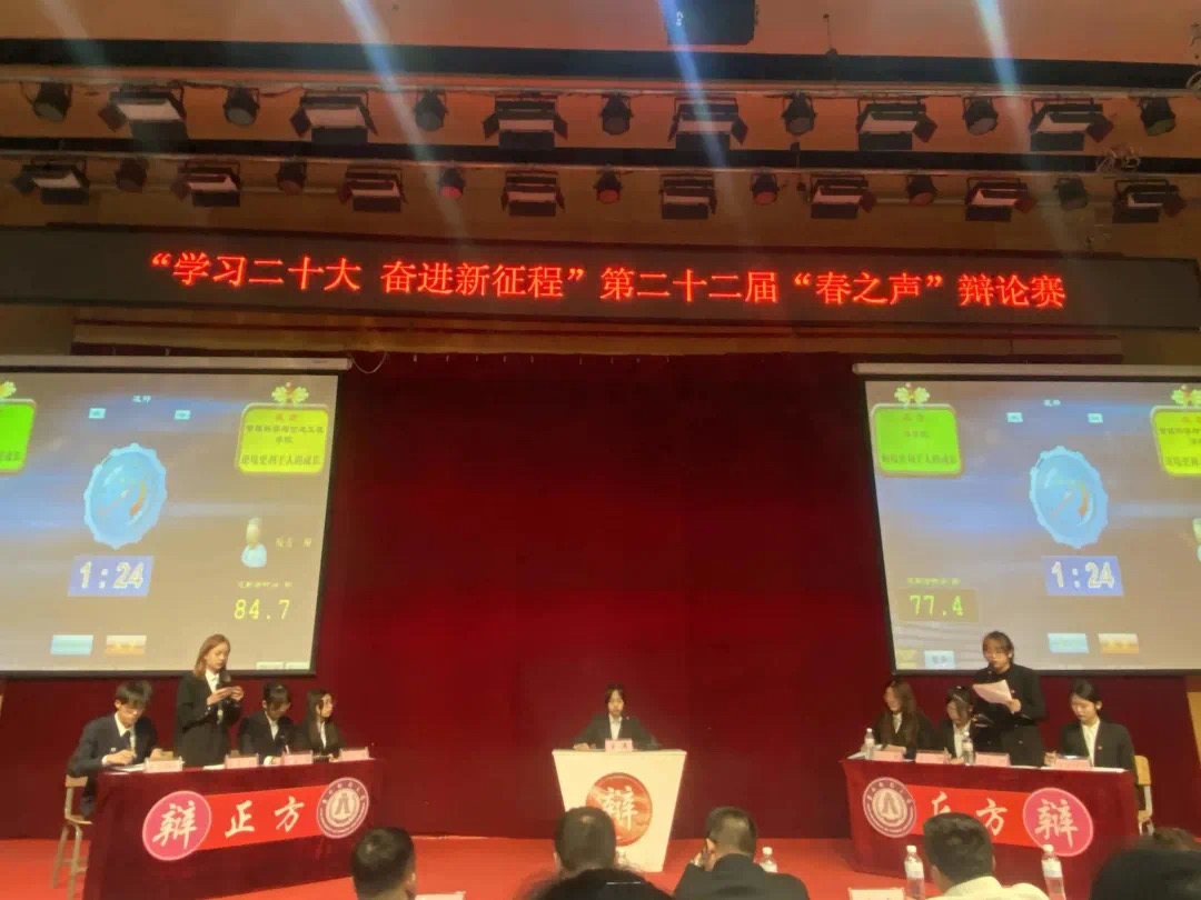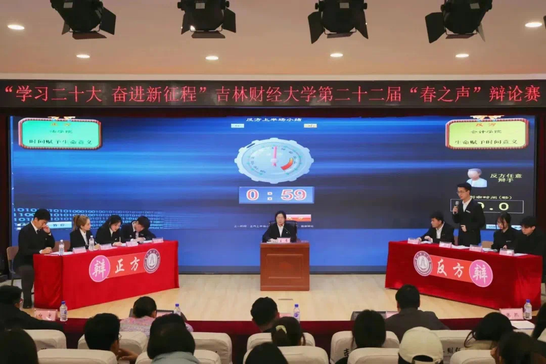 本网讯(校团委 供稿)为丰富校园文化生活,展示青年学生踔厉奋发、勇毅前行的青春风采,学校团委于3月29日拉开“学习二十大 奋进新征程”第二十二届“春之声”辩论赛的序幕。经过初赛12支队伍、复赛8支队伍和半决赛4支队伍的激烈角逐,会计学院和法学院进入决赛,最终会计学院捧得桂冠。