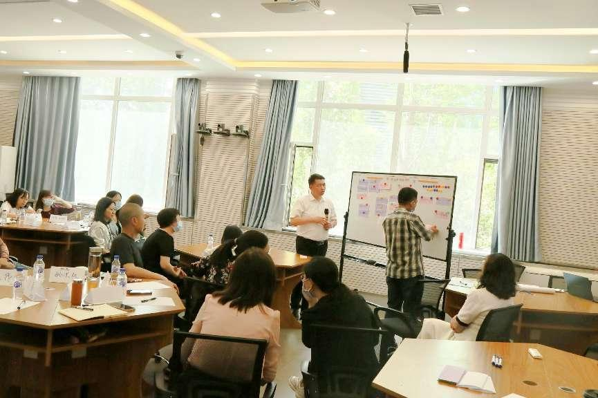 “教练式”教学法是一种问题驱动式的合作学习、自主学习方法,通过教练的引导,可将原本抽象复杂的问题,条分缕析、层层深入,变成一个个可落地可执行的具体举措。面对“教师型”被培训对象,方春明博士将学院创新发展定为培训研讨主题,本人化身为“教练”,对教师分组定员,按照学院创新发展所需要重点突破的“环境洞察”、“目标方向”、“领先实践”、“发展策略”四个步骤来分配任务,通过多轮引导,使受训教师转换角色,以领导的视角思考如何促进学院创新发展。在方博士的引导下,全体教师深入思考和讨论了什么是创新发展,创新视角下学院的学科专业建设、科研团队组建、文化制度建设等重大问题如何推进,应达到什么样的效果,通过洞察环境、明确方向,研判策略,群策群力创未来。
