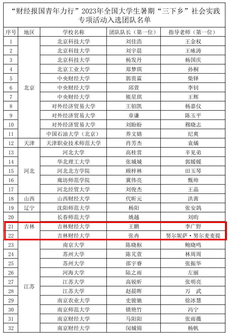 入围名单二:“财经报国青年力行”2023年全国大学生暑期“三下乡”社会实践专项活动