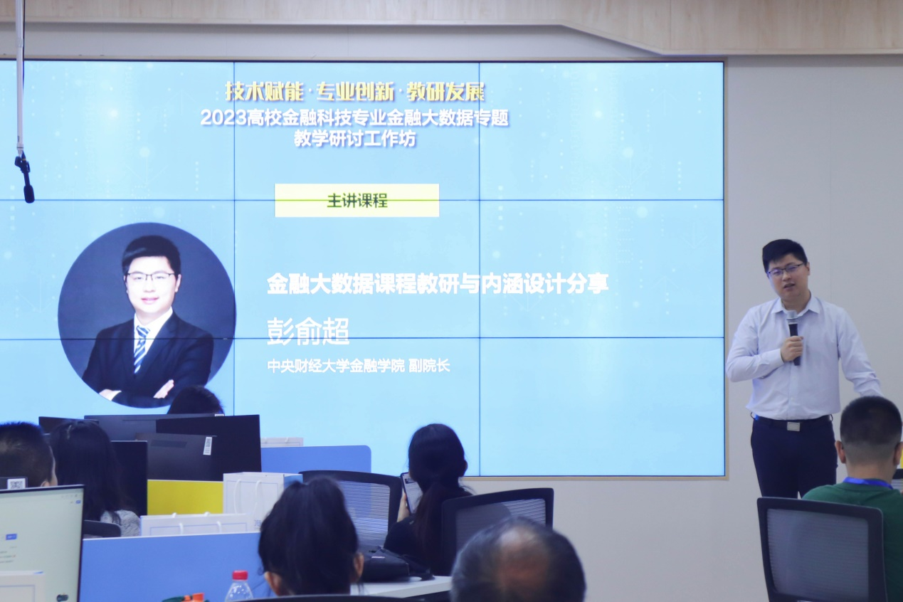 工作坊第一天的课程由中央财经大学金融学院副院长、丝路金融研究中心主任彭俞超主讲。他以“大数据金融课程设计”为题,通过大数据金融课程建设实践经验分享,围绕“为什么讲、讲什么、怎么讲”探讨了大数据金融课程设置的重要性、课程目标和课程内容的具体设计,同时与参会学员们研讨了大数据金融课程的教学内容和教学方法。通过中央财经大学金融学院开设的大数据金融课程真实教学案例分享,参会学员从大数据金融原理、方法和实践三方面对大数据金融课程的创新式教学有了沉浸式体验。