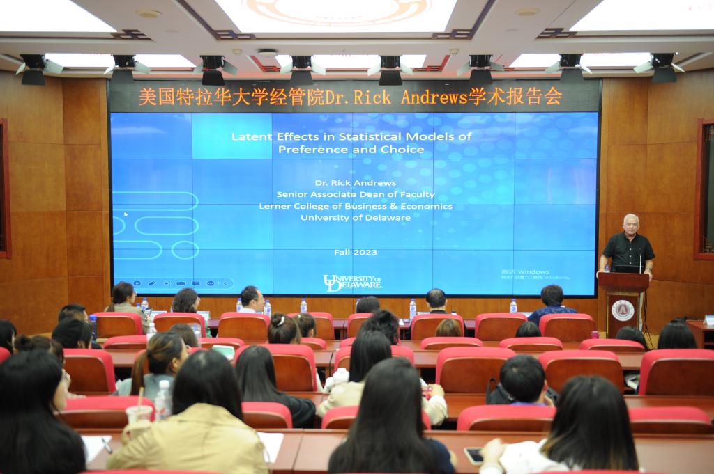 本网讯(国际经济贸易学院 供稿) 9月20日下午,美国特拉华大学经管学院Rick Andrews教授应邀到taptap点点开展学术交流,作题为“Latent Effects in Statistical Models of Preference and Choice”的学术报告。报告会由国际经济贸易学院副院长王素玉主持,院长关嘉麟、副院长杨立国、学院部分教师及全体研究生参加了报告会。