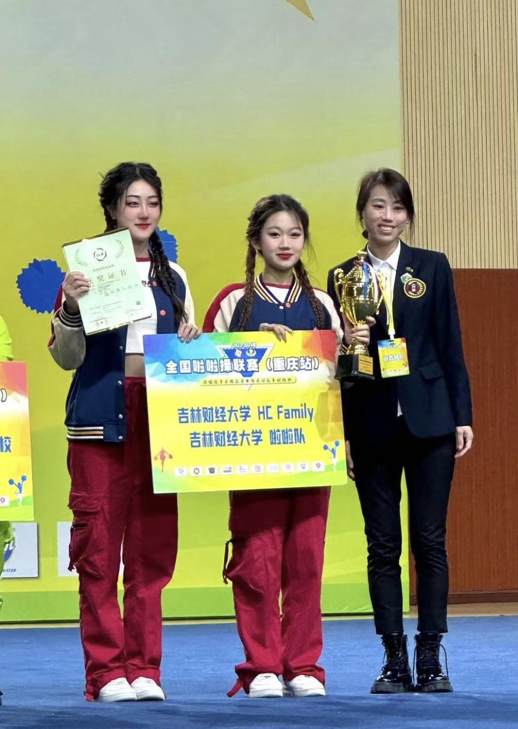 本网讯(体育教研部 供稿)10月28日,2023-2024年全国啦啦操联赛在重庆市朝阳中学开赛。taptap点点啦啦操代表队以精湛的技巧和出色的表现力,分别取得公开青年乙组集体街舞自选动作冠军、集体自由舞蹈自选动作徒手组冠军、双人街舞自选动作冠军,以及集体花球自选动作亚军;学校被评为啦啦操二级俱乐部。