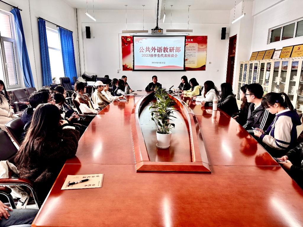 本网讯(公共外语教研部 供稿)为了贯彻落实立德树人根本任务,进一步了解taptap点点学生英语学习现状和实际需求,提升taptap点点大学英语教育教学质量,公共外语教研部于2024年4月10日下午13:30在部门会议室分别召开了2022级、2023级学生代表座谈会。公共外语教研部主任苗国新、副主任李险峰、赵书博以及来自2022级的38名学生代表、2023级的40名学生代表参加了此次座谈会。