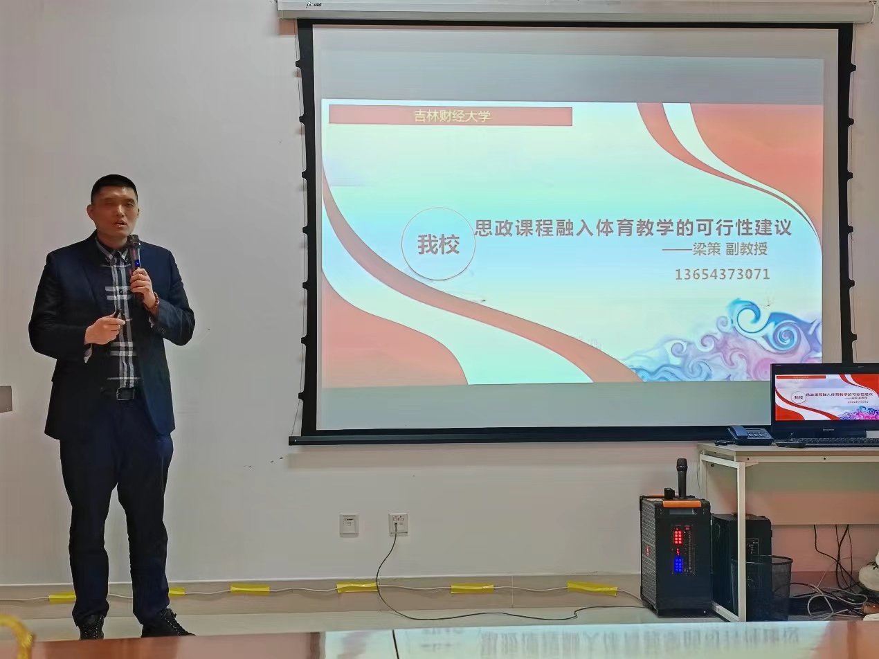 本网讯(体育教研部 供稿)体育教研部持续巩固学习贯彻习近平新时代中国特色社会主义思想主题教育成果,2024年4月12日,体育教研部全体教师参加了思政课程培训,邀请马列部梁策副教授作了《思政课程融入体育教学的可行性》专题报告。梁策副教授从当今世界处于百年未有之大变局和中华民族实现伟大复兴战略全局出发,讲述体育承载了国家强盛,民族振兴的梦想;要以人民为中心,继续发扬“发展体育运动,增强人民体质”精神,全面开展群众体育和竞技体育活动;如何把思政课程融入到体育教学和科研实践中去。体育教研部程禹主任对梁策副教授的报告进行了总结,要求全体教师进一步加强体育教学、科研与思政课程融合力度,实现以体强身、以体育心的育人目标。(审核人 程禹)