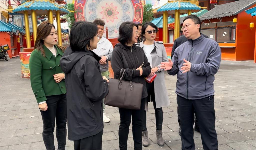 调研组率先来到仁兴里文旅项目现场,当地文旅局长介绍目前该项目正在全面升级改造,预计将于“五一”假期重新恢复营业,此次改造以期将国潮融入街区,使仁兴里更具有文化属性。赵丹丹老师表示:文旅项目是推动地区发展重要力量之一,我们应不断创新和改造,满足消费者需求。